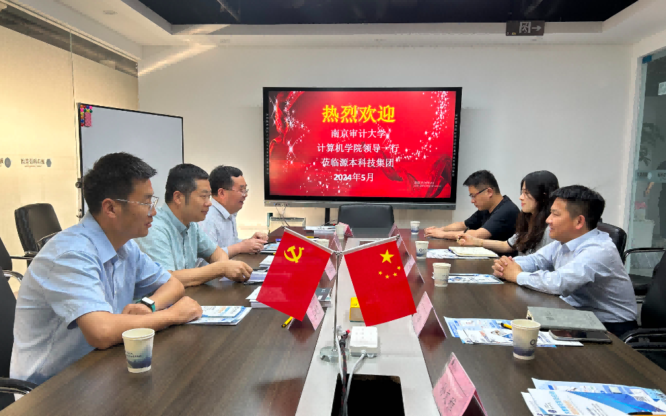 为贯彻落实党中央、国务院关于高校毕业生就业工作的决策部署,全力促进毕业生高质量就业和产教融合开展,2024年5月15日下午,南京审计大学计算机学院副院长郭红建带领计算机系主任崔应留、信管系主任姚兴山以及吕从东老师来到江苏J9国际站 J9科技集团召开“访企拓岗产教融合”专项行动。